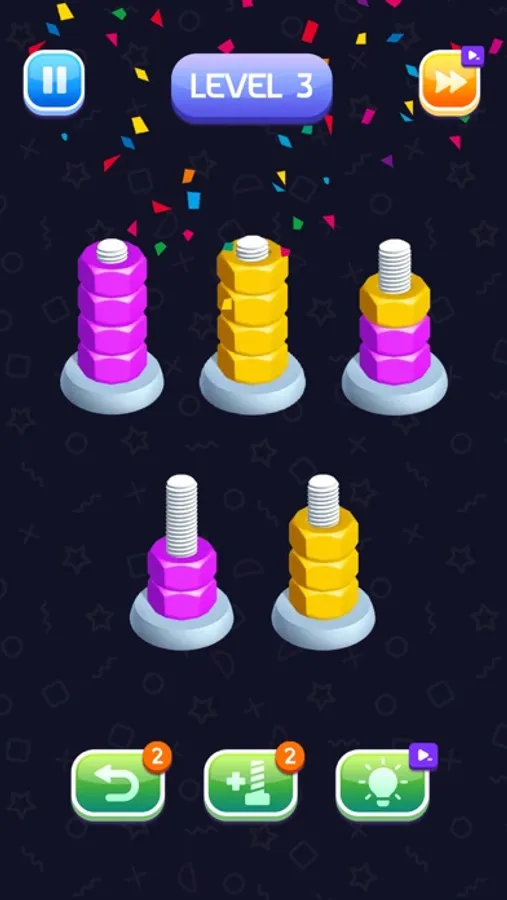 Healthily fill your free time! Train your brain, let the eyes enjoy, and happy emotions come and stay for the whole day. This amazing screw-sort game will hook you for hours. Download and Play NOW!