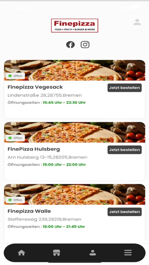 Herzlich Willkommen bei “Fine Pizza” in “Bremen”. Wir bedienen unsere Kunden mit italienischen Pizzen, Salaten, Pasta Speisen und machen das seit mehreren Jahren aus Leidenschaft. Wir freuen uns immer wieder, neue Kunden unserer Herkunft näher zu bringen und möchten ihnen die Möglichkeit geben, ihre Bestellung unkompliziert und total einfach abzugeben. Aus diesem Grund möchten wir Ihnen unsere neue App und unseren Online Shop vorstellen, mit dem Sie problemlos über Paypal, Bar und Kreditkarte bezahlen können.