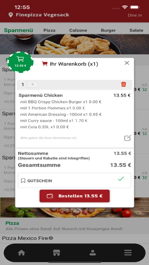 Wir laden Sie ein, es zu versuchen, Sie bekommen bis zu 10% Rabatt auf Ihre Bestellung. Ihr Team von “Fine Pizza” in “Bremen”.