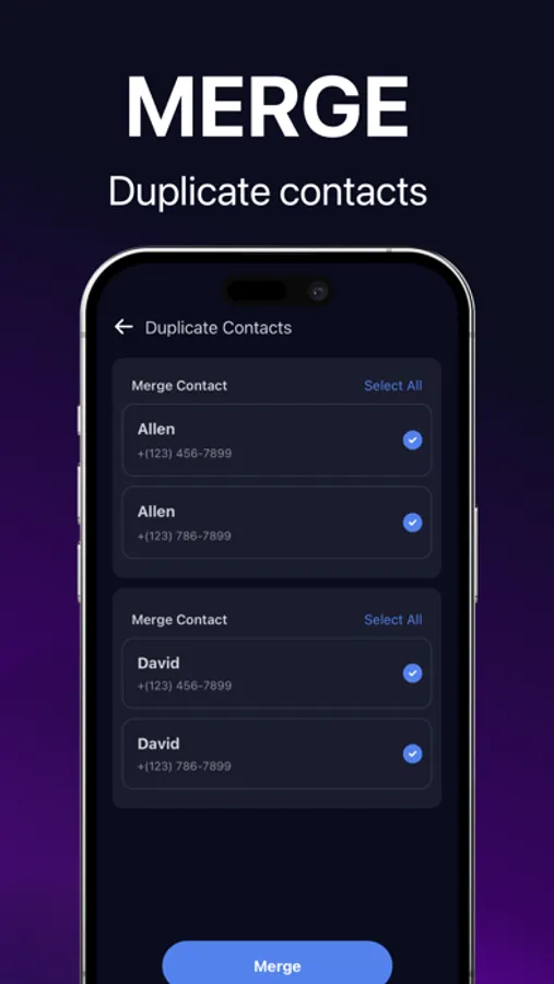 5. Duplicate Contact MergingMerge duplicate contacts in your phonebook, keeping your contact list organized and efficient.