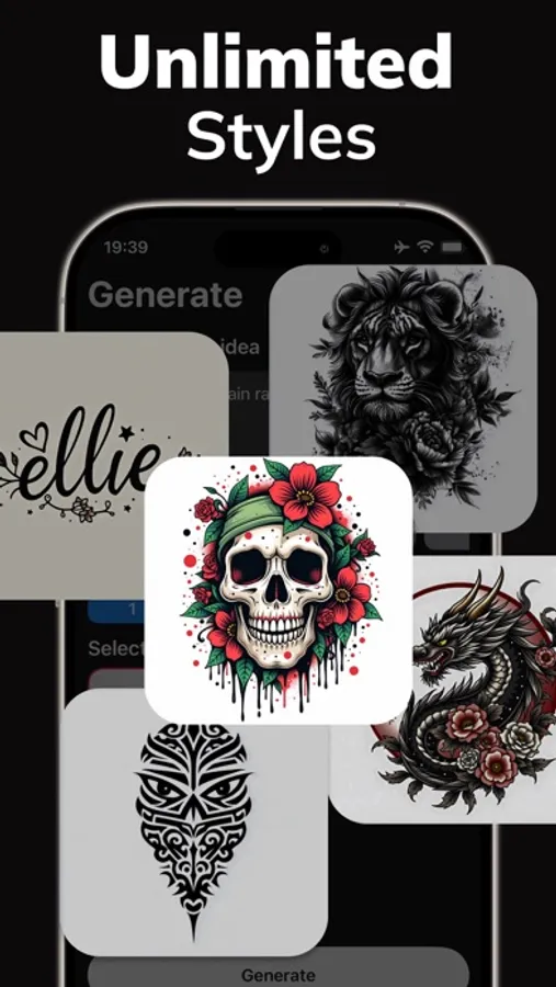 - AI Tattoo Generation: Input your unique ideas and watch as AI creates custom tattoo designs in seconds.