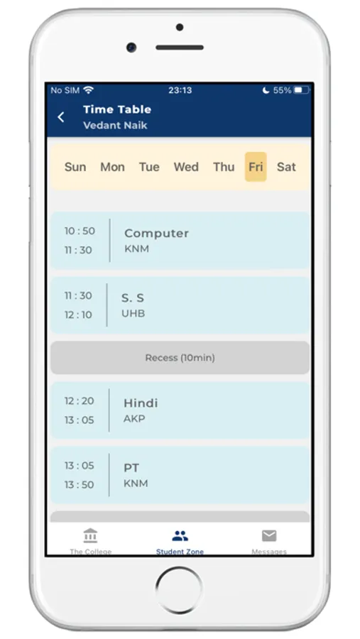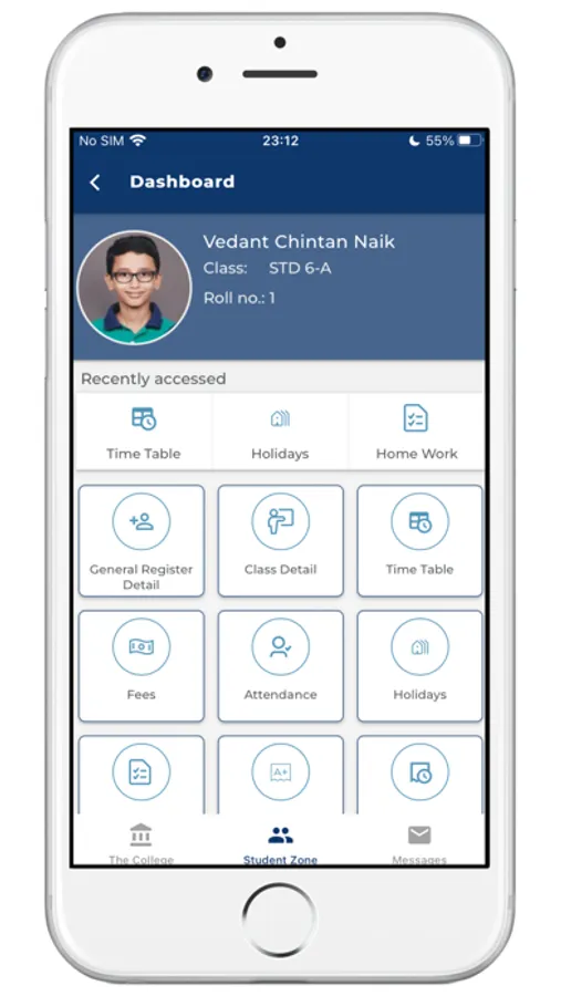 (2) Parent Zone - Parents can see their kid's personal records in this section. For example - General Register details, Time Table, Attendance, Exam Results, Fee Payment details etc. Parents will have to register into the app using the same mobile number which is supplied for school General Register record.