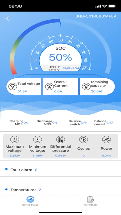 4. Monitor the battery fault alarm, showing the current battery fault and the number of faults;