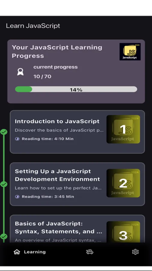Comprehensive Learning Path: Whether you're preparing for a job interview, looking to build projects, or simply want to master JavaScript, this app covers all aspects of the language.