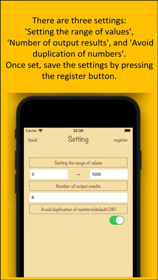 The app will randomly extract numbers within this range.