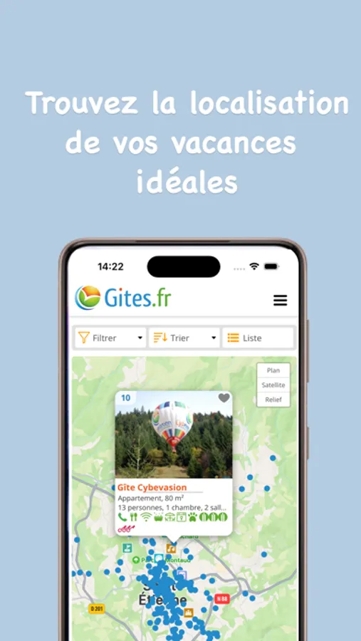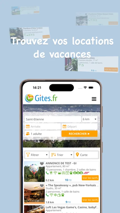 Téléchargez notre application dès aujourd'hui et louez une location de vacances - votre référence pour les hébergements de vacances : gîtes, appartements, chalets, cabanes, villas, maisons de plage et bien plus encore.