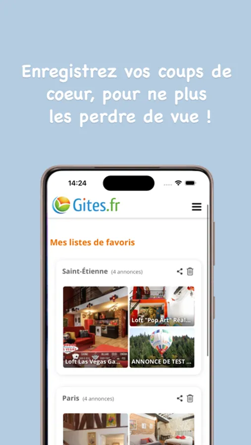 Une fois que vous avez réservé votre gîte idéal, l'application vous sert de porte-documents de voyage. Accédez à tout moment aux détails de voyage pour votre hébergement de vacances. Vous pouvez ainsi profiter et gérer vos vacances à venir en toute sérénité.