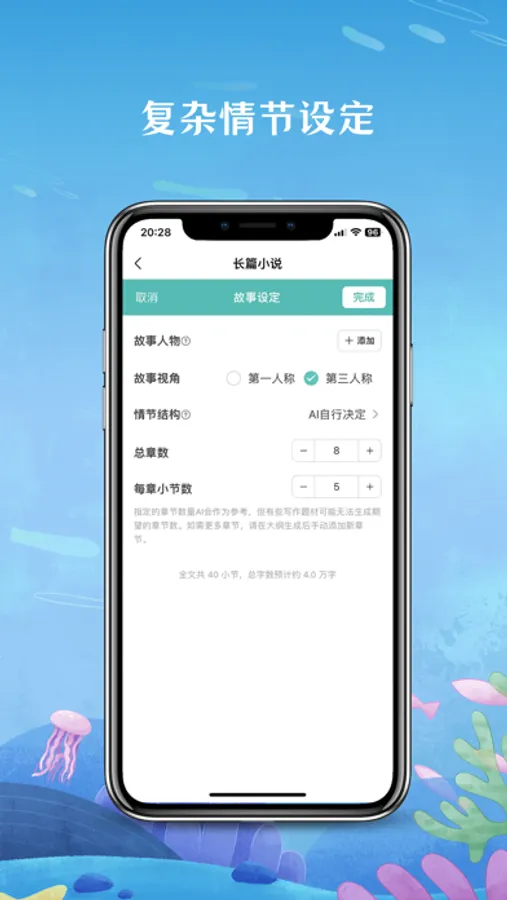 * 超长小说:AI小说家可完成多达200个章节的长篇小说,全文字数可达30万字。
