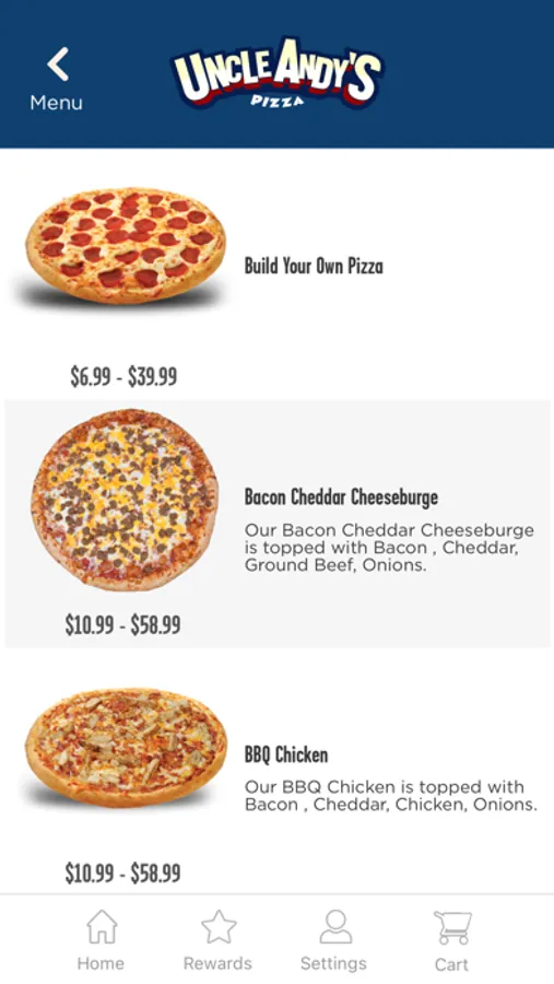 The official Uncle Andy’s Pizza app allows for easy online ordering on the go. Enjoying your favorite pizza and sides has never been easier!
