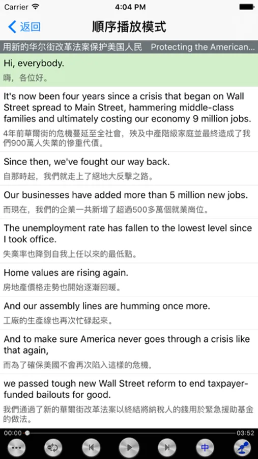 奥巴马演讲集会合了美国现任总统奥巴马每周发表的英语演讲,为广大英语学习者提供了一个学习英语的平台。目前共收录多达60多个音频及中英文文本对照,并附有准确的字幕点读功能,全部内容完全免费!