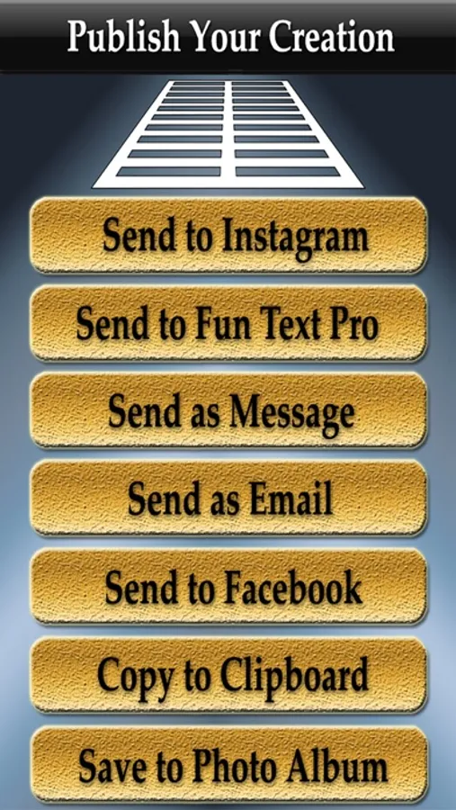 You may easily export your creations to Instagram, Facebook, Email, MMS, Save to Photo Album, or any other installed application that will accept images.