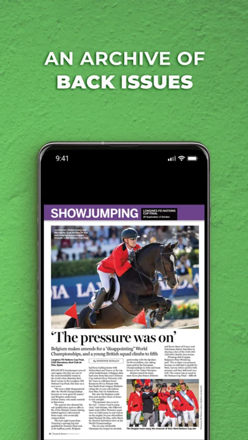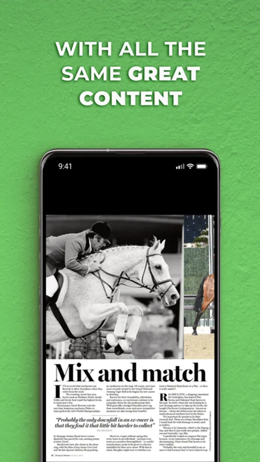 Encompassing eventing, show jumping and dressage, plus hunting, polo, racing, showing, driving, endurance and point-to-pointing, we cover a gamut of equestrian sports. Besides celebrating the achievements of elite riders, we also recognise those of hard working amateurs, competing at the lower – but no less competitive – levels.