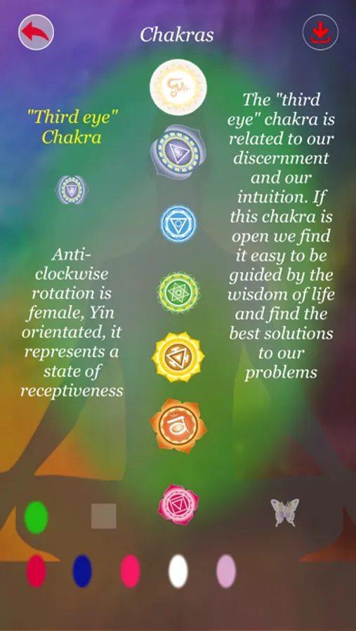 This application aims to reflect the present moment, highlighting the interactions we have with ourselves and the outside world. For example, which energies we channel or block (chakras), and what thoughts and emotions prevail in us at that moment (Aura). This application can be seen as a forecast of the present moment, that fluctuates according to our level of consciousness, our thoughts and present emotions.