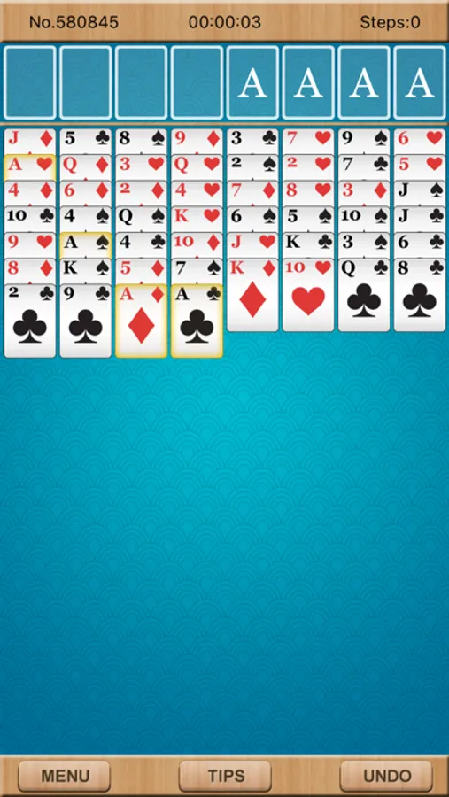 + A card can also be moved to an empty cell (the four slots on the top-right side of the screen) or to a foundation pile. A cell may contain only one card.