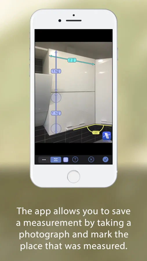 The app also allows you to save a measurement by taking a photograph of the measurement and mark the place that was measured.