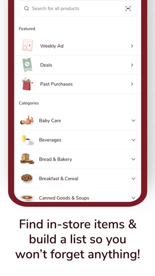 Use the app in store to find items by aisle locations, then scan to check prices and deals.