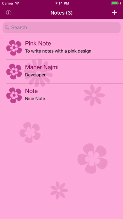 هو عبارة عن تطبيق لكتابة الملاحظات بتصميم جذاب باللون الوردي.