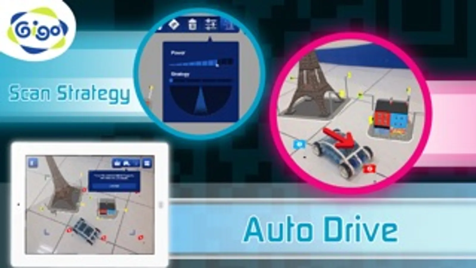 Gigo has created a remote control future car that you can steer from your iPad or iPhone. Simply by swiping fingers on the touch screen, you are able to navigate the car in any direction you want. Through the screen, you will see the Car, not only driving on the floor of the room, but also exploring in a vivid cityscape generated by our Augmented Reality technology.