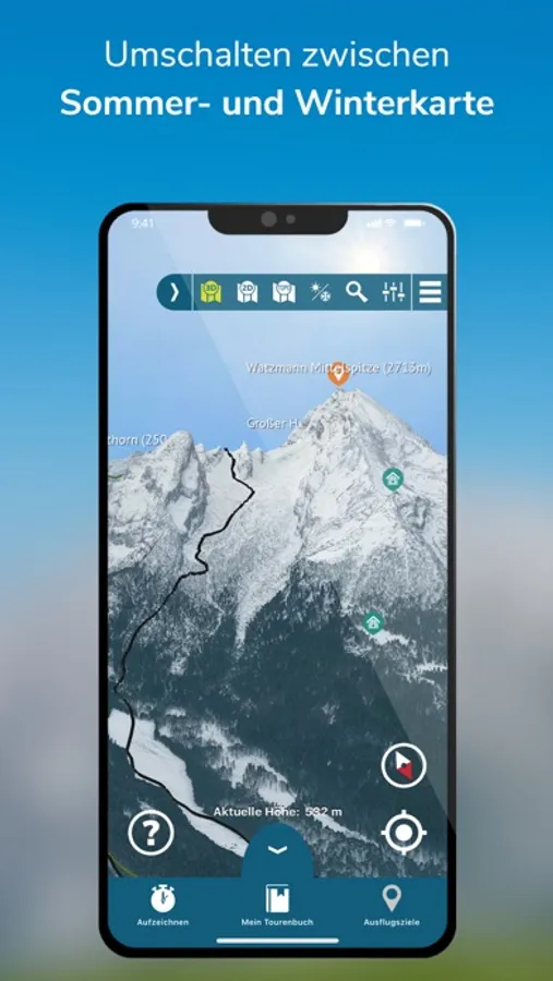 Since there is not cellular reception in all areas of the Berchtesgaden National Park, the app is prepared for offline mode. Downloading the 3D map leads to increased amounts of data. We therefore recommend downloading the summer and / or winter map of the national park via WiFi.