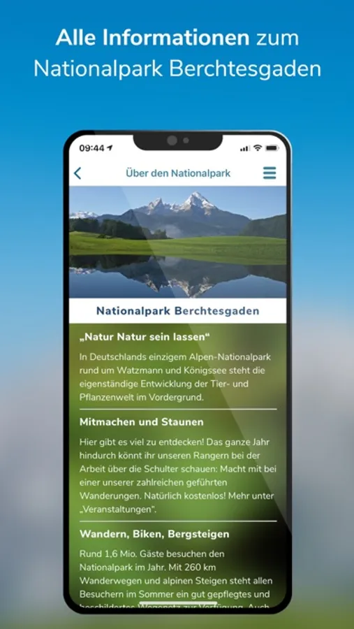 With this app, Germany's only Alpine National Park becomes a unique experience: 10 selected excursion destinations, 38 tour tips, from hiking tours to bike, snowshoe, ski to barrier-free tours. In addition, there are many tips on how to behave in the large protected area, as well as several webcams that offer up-to-the-minute pictures of the national park.