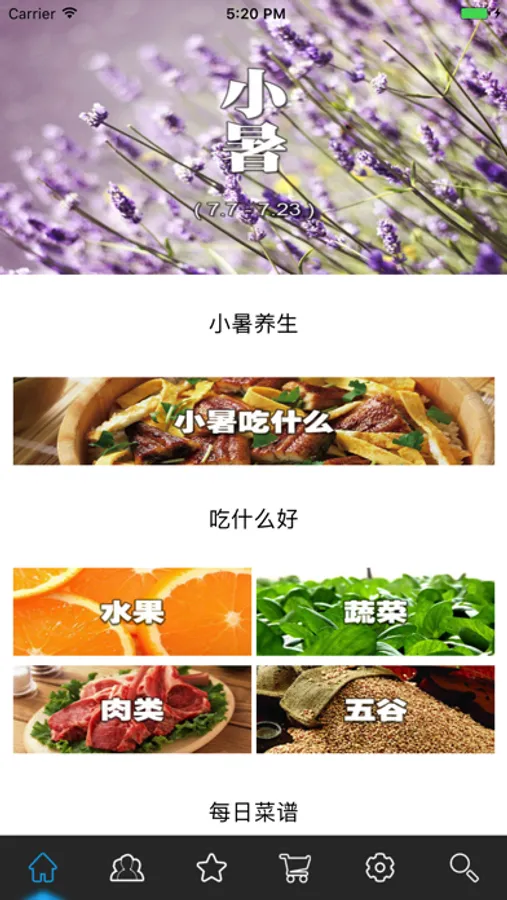 吃出健康APP根据一年的24节气和你的中医体质信息,你可以知道当下季节最适宜的食材,哪些食材你吃会更健康,哪些食材你不能吃。