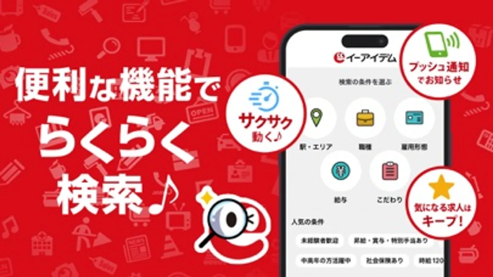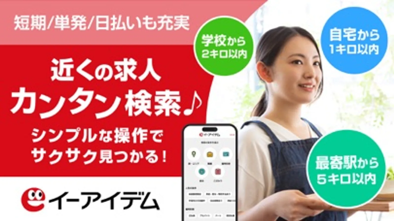 バイト探し・仕事探し・求人検索なら、アルバイト求人が豊富な無料のアプリ、イーアイデムにお任せ!