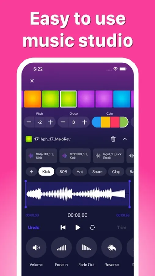 Create your own sound packs: sample audio from video, import your own audio files, use our sounds, record vocals or real instruments with a microphone. Make your sound pack and share it. Collaborate with your friends and make something absolutely new (or funny ;) ).