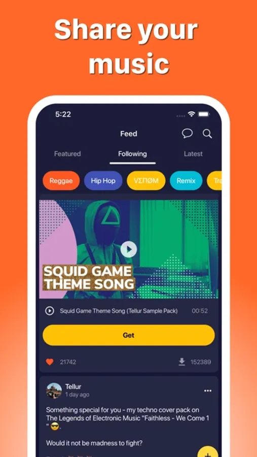 Get sound packs from beatmakers all over the world in our unique feed. Or create your own sound pack and see how the likes and downloads grow ;)