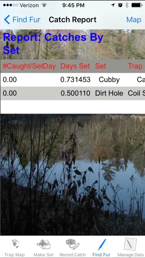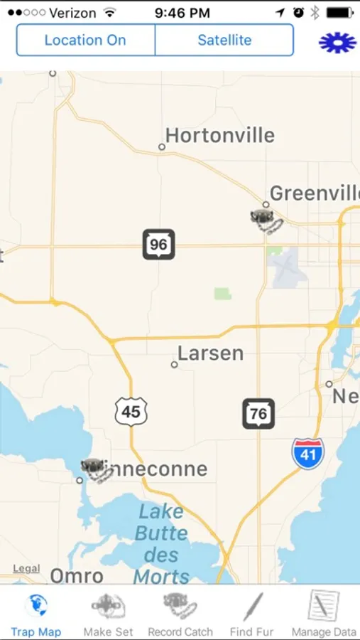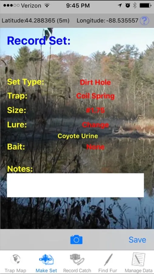 You can set the trap information from the comfort of your living room, by using the map page. Simply zoom in on the map until you see the location for the trap, tap the screen, and then enter the information for your trap. This way you don't have to worry about losing your phone in the swamp!