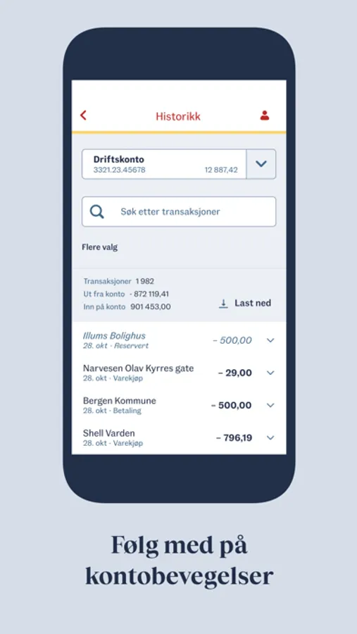 - Få full oversikt over bedriftens kontoer og kontobevegelser