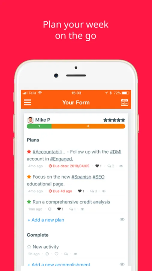 Not using any todo list app yet? You can use Weekdone as a simple task manager, listing your goals and objectives as plans and moving them to progress. Focus on what’s important and get things done.