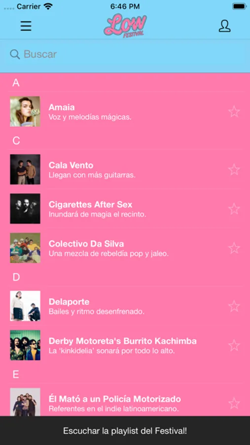 Con esta app podrás consultar los horarios, escuchar a las bandas confirmadas, descubrir la ciudad, y mucho más: marca tus favoritos y recibe una alerta 15 minutos antes de su actuación o consulta la información sobre transporte y alojamiento en el festival. ¡No te pierdas nada!