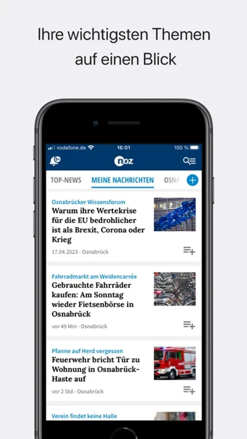 Nachrichten aus Ihrer Region: Mit der noz News-App für das iPhone, iPad und die Apple-Watch sind Sie immer bestens über das aktuelle Geschehen aus dem Raum Osnabrück, dem Emsland und der Welt informiert. Ab sofort noch lokaler, persönlicher und übersichtlicher.