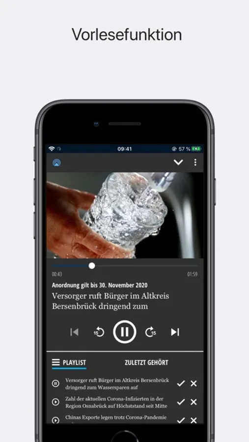 Keine Hand frei zum Lesen? Mit der neuen Audiofunktion können Sie auch mit den Ohren lesen. Ob beim Autofahren, beim Joggen oder bei der Gartenarbeit: Klicken Sie auf das Play-Symbol im Artikel und lassen Sie sich die wichtigsten News vorlesen oder lauschen Sie einem unserer Podcasts. Auf der Playlist können Sie sich Ihre persönlichen Nachrichten zusammenstellen und sogar unterwegs im Offline-Modus hören.