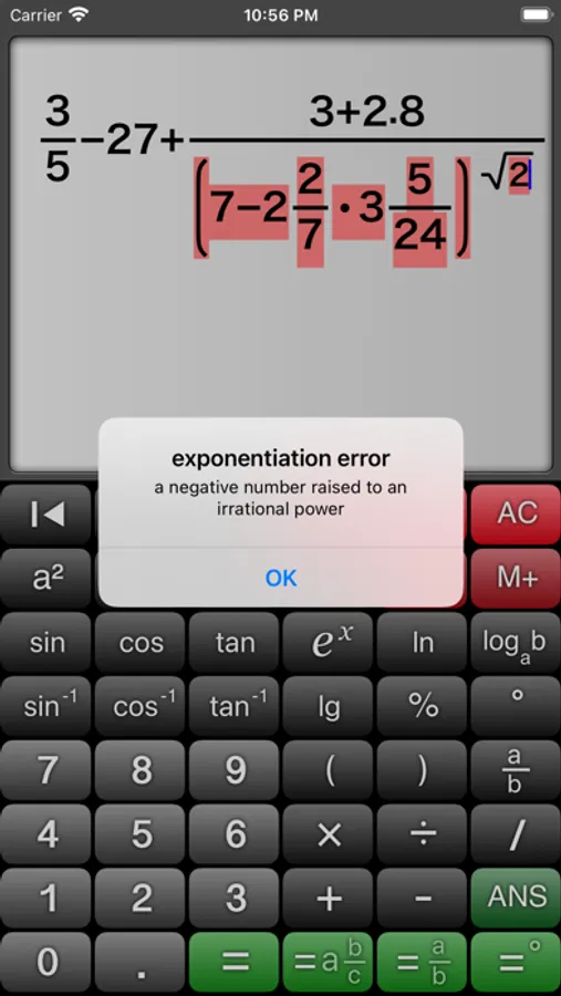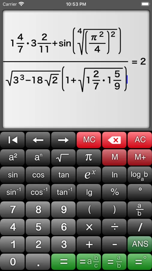 The special feature of the calculator "iMathics" is the natural representation of mathematical expressions such as fractions, roots, exponents and logarithms as on the blackboard and in books.