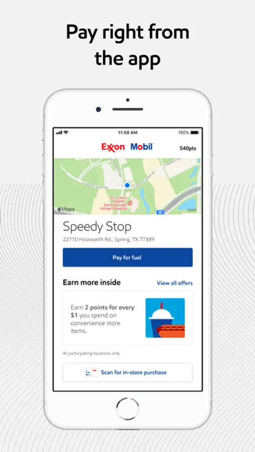 Exxon Mobil Rewards+ app allows you to stay in the comfort of your vehicle while you pay for Synergy™ fuel with your phone. Say goodbye to taking your wallet out and swiping your credit card at the pump.