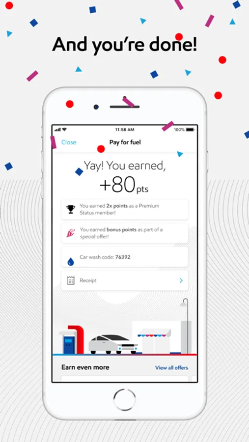 It’s simple, safe, and contactless! Just open the app, select your pump number, and authorize the pump. All you have to do is get out of your car to select a fuel grade and begin fueling. When you finish fueling, the app automatically displays a receipt with your transaction total, earned rewards and, if selected, a car wash code!