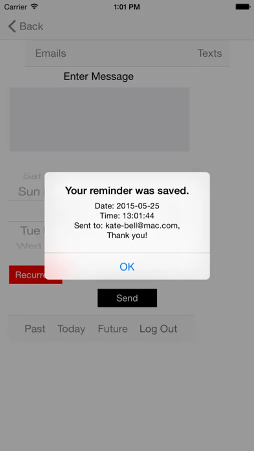 Reminders can be scheduled to send immediately, later that day or some future date. Use the contacts in your contact list or manually enter email addresses or text numbers. Set up a default email address and text number to send out reminders quicker. Send recurrent reminders by days, weeks, months or years. Lastly, send text and email reminders in the same message, mix and match between multiple contacts.