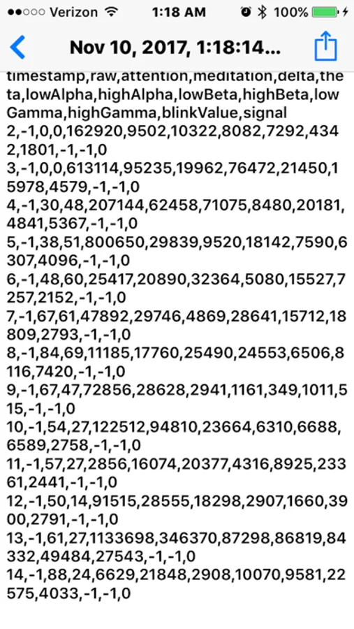 This program works with the MindWave mobile EEG mnitor from NeuroSky. It captures all available signal values and stores them as comma delimited text for offline analysis.