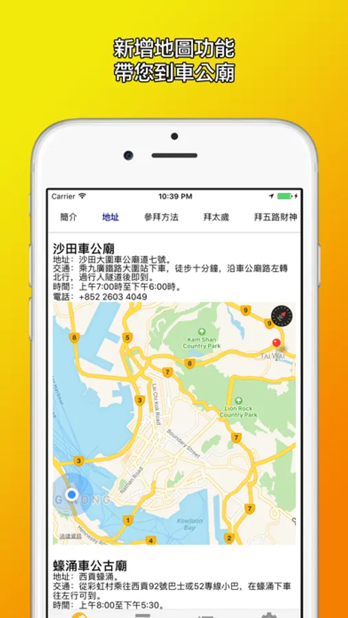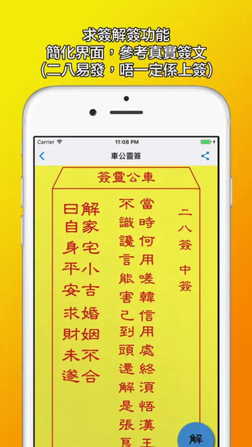 本軟件可以可以讓善信或市民了解車公廟,而且更有求簽及解簽等多項功能.