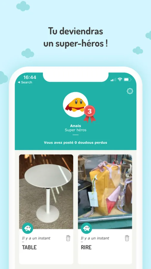 Accès à votre mur des médailles, à votre statut et à la liste des doudous que vous avez repérés.