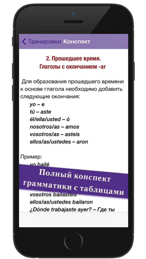 ► Встроенное описание грамматики к каждой тренировке, к каждому предложению