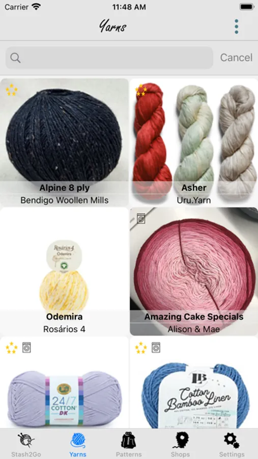 * Search for yarns based on the extremely large Ravelry yarn database, and review details of a yarn, associated images with ease