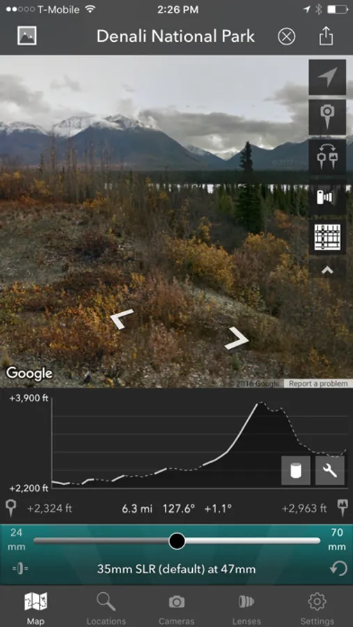 With a rich feature set including Google Street View, and offline maps and elevation data, and a choice of elevation data sources, The Photographer's Transit is a powerful tool for any photographer who likes to be well prepared.