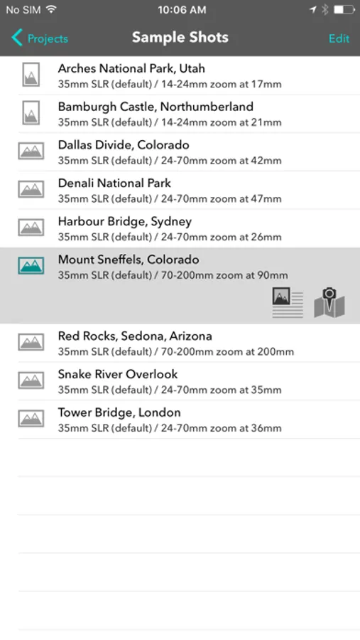 Create projects containing detailed shot lists, including camera and subject location, height above the ground, pitch, orientation and focal length. Share your planned shots with colleagues and friends via email and social media, or export them as KML for use in your favourite GPS app.