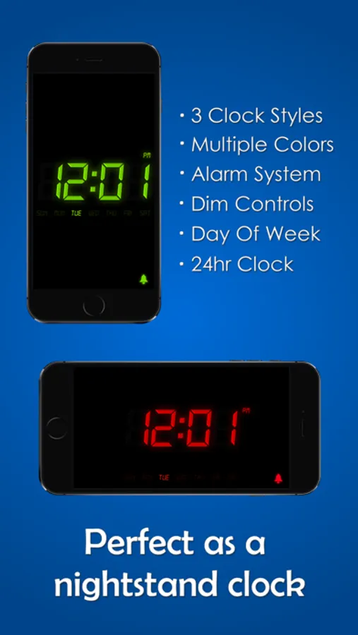 - Digital Clock which includes 3 different styles, multiple colors and brightness controls.