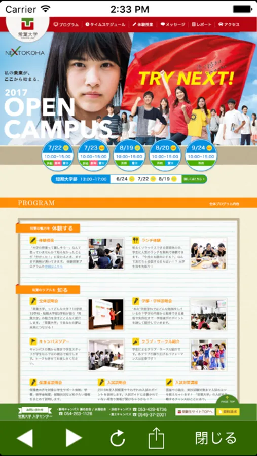 常葉大学の学部・学科情報、大学案内デジタルパンフレット、アクセス、資料請求、オープンキャンパスなどのイベント情報などを満載しています。