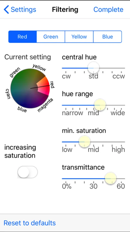 3. Saturation increase -- increases the saturation of all colors,4. Filtering -- darkens all colors other than the specified color, and