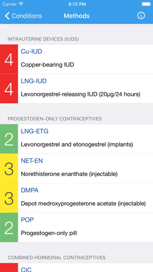 Providers can select conditions according to the patient, and the App assigns automatically a category for each method. Generally speaking and with medical criteria, the categories 1 and 2 permit the use of a treatment in any case or with some considerations and categories 3 and 4 advise against or forbid its usage. For more information consult this App or its documentation.