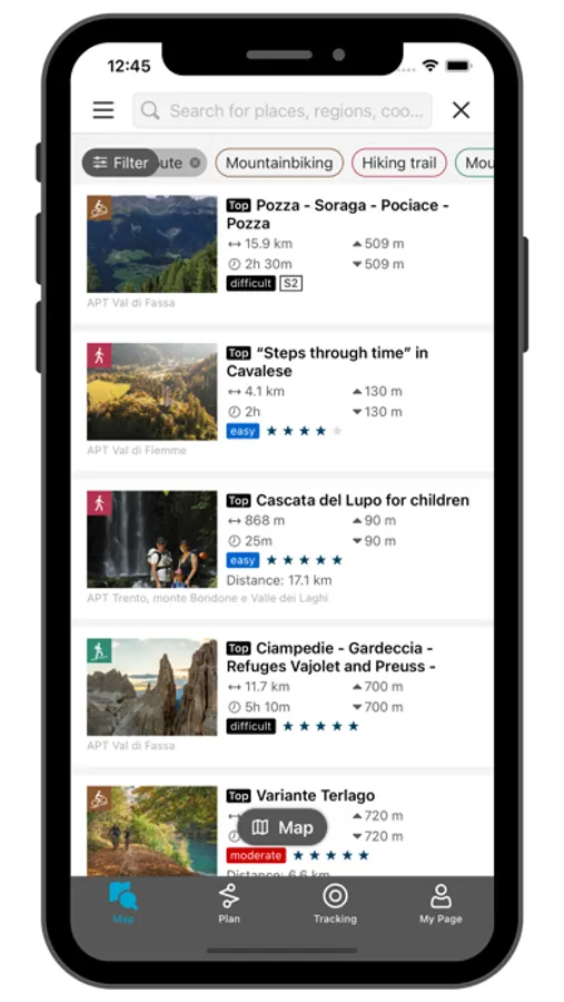 You can get detailed descriptions, technical information, maps and GPS directions that you can even save offline for your summer and winter outdoor activities in Trentino.